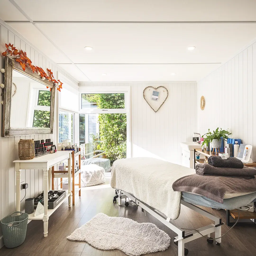 A modern wellness cabin provides a chic, luxurious place to hold wellness sessions, spa treatments, massages, yoga classes and more. Our modern wellness cabins are bespoke made to your specifications and requirements.